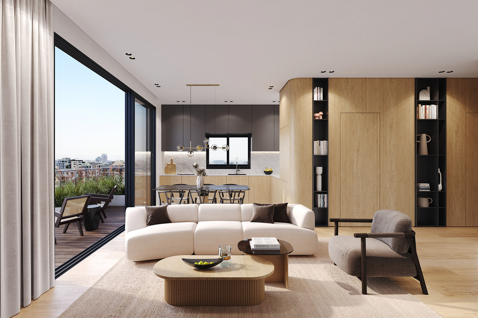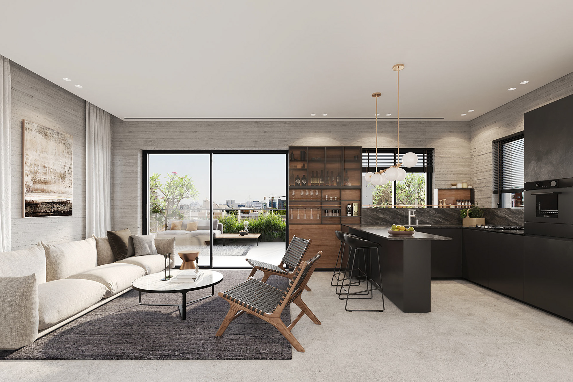 Gilboa Apartments - A set of interior images for apartments at Gilboa, Giv'atayim. Crafted (design and visualization) for Kav HaYam Real Estate by The Craft. Architecture by V5 Architects.