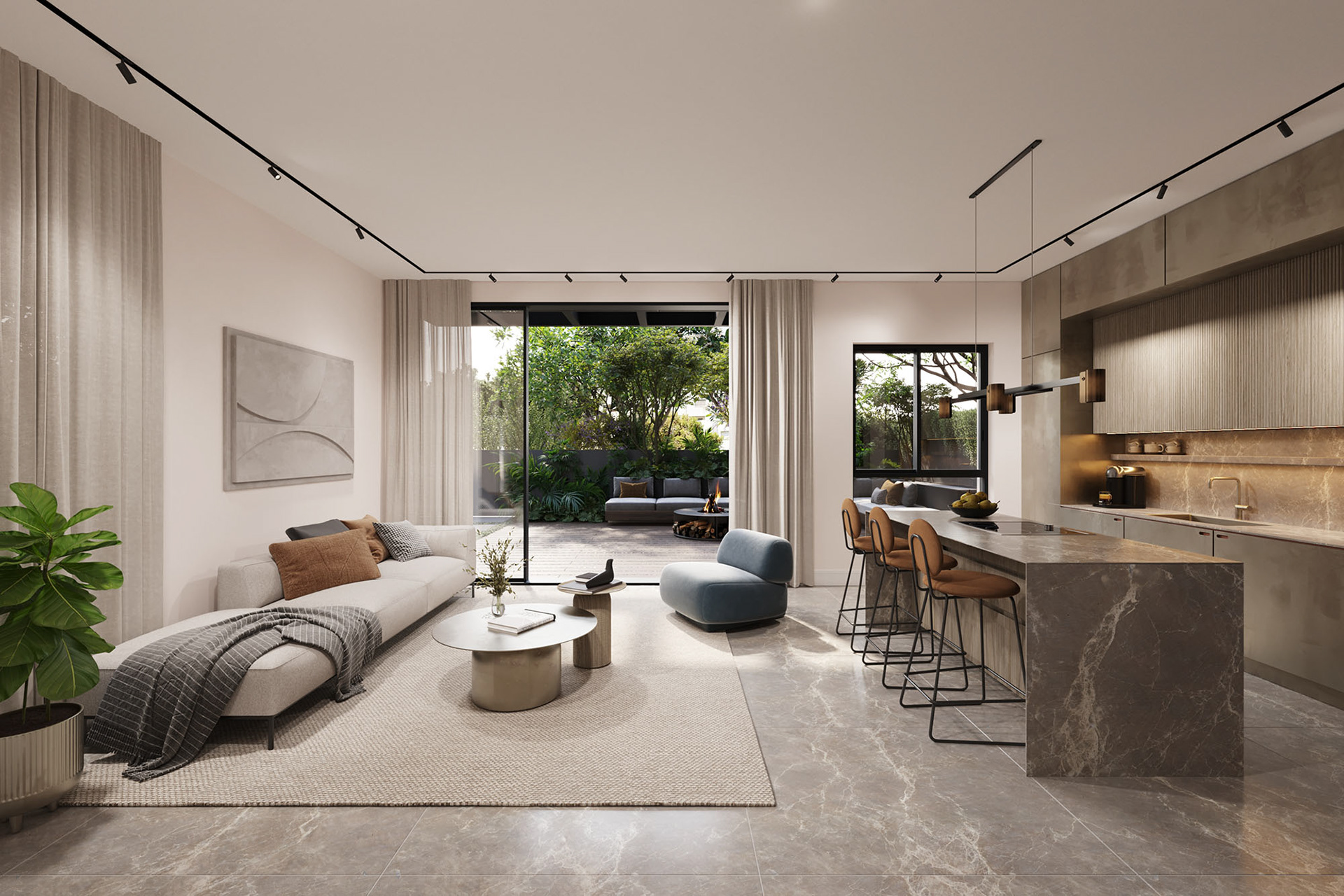 HaMa'alot Apartments - A set of interior images for apartments at HaMa'alot, Giv'atayim. Crafted (design and visualization) by The Craft TLV for Kav HaYam Real Estate by The Craft. Architecture by V5 Architects.