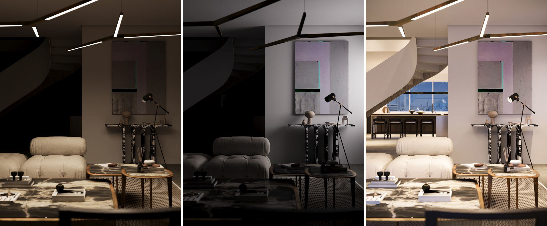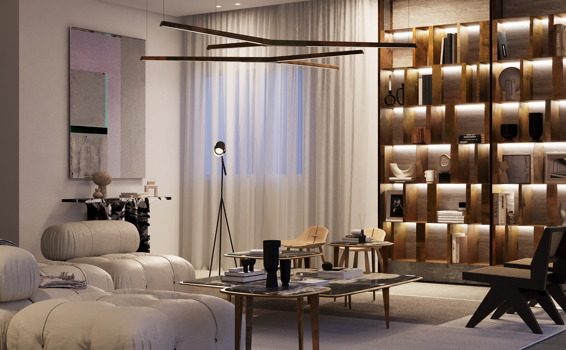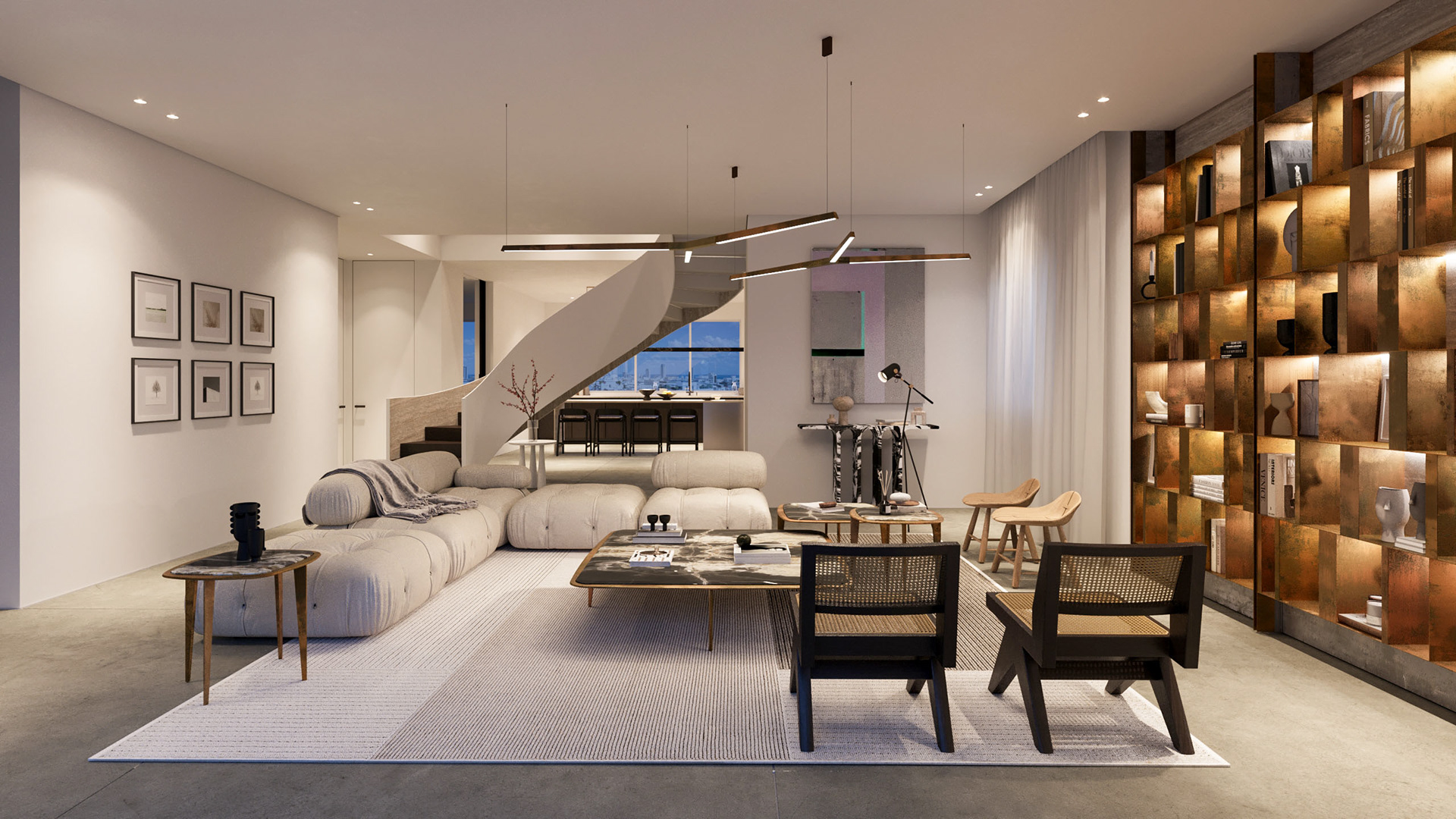 A set of 3d renders by The Craft TLV for A penthouse in central Tel Aviv. Designed by Ilan Pivko Architects.
