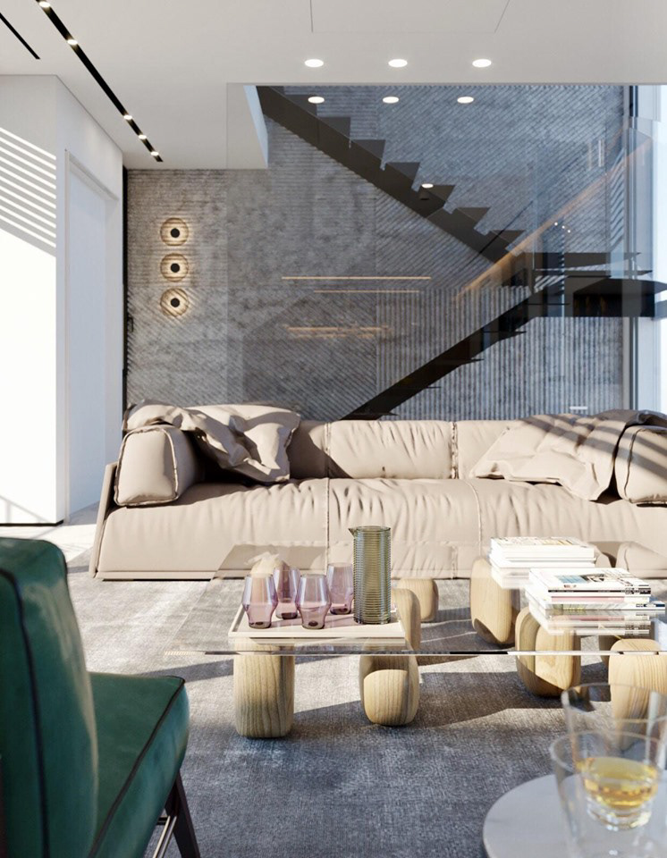 Interior Design 3d Visualizations for an Urban Villa at Kerem HaTeimanim, Tel Aviv, Israel. Designed by Tal Ohayon Architects,