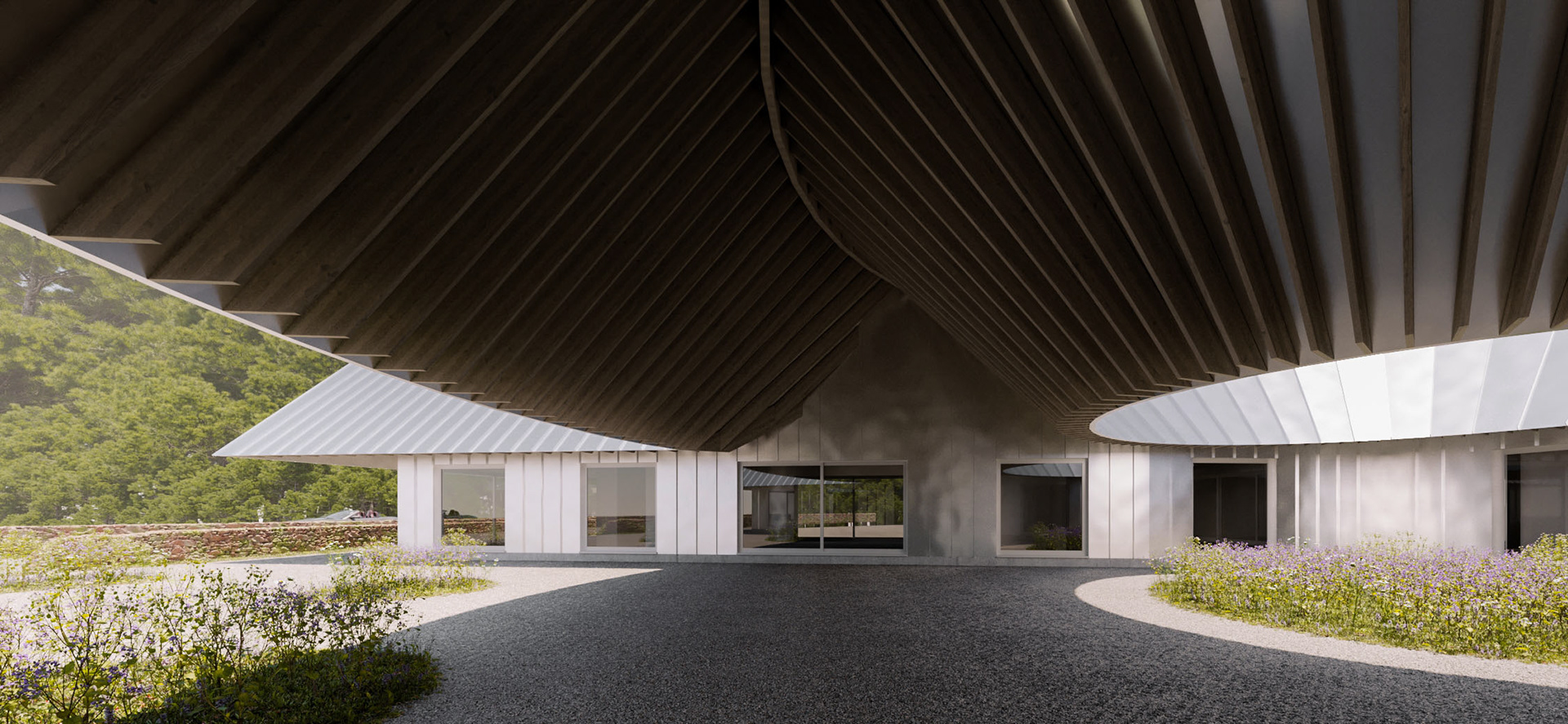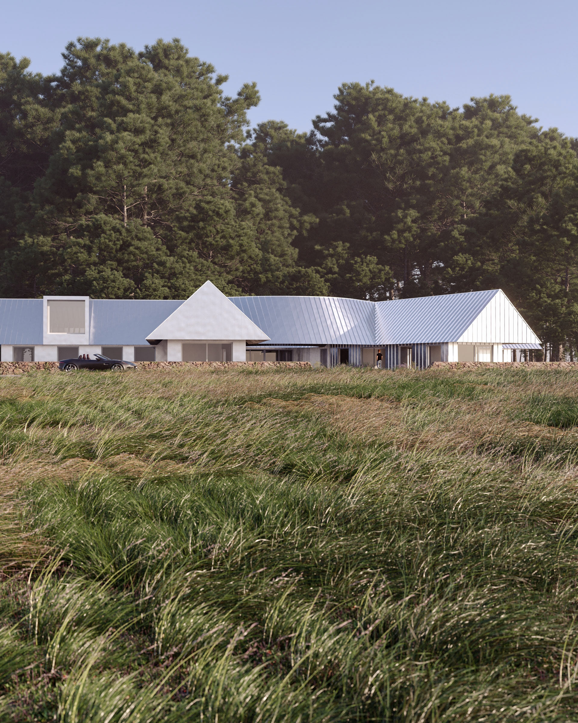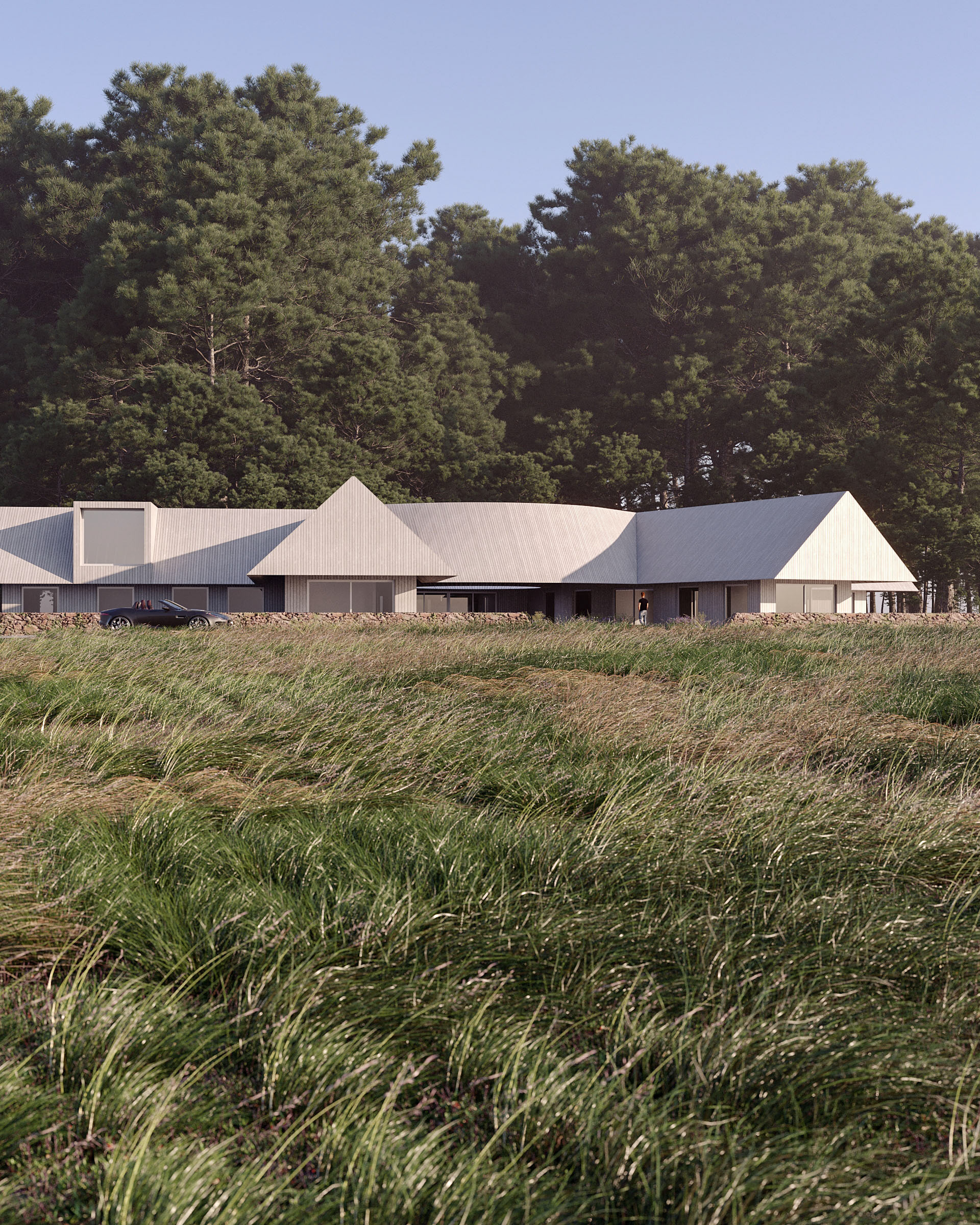 Conceptual visualization for a dual house in Upstate New York, USA. Designed by MOS Architects.