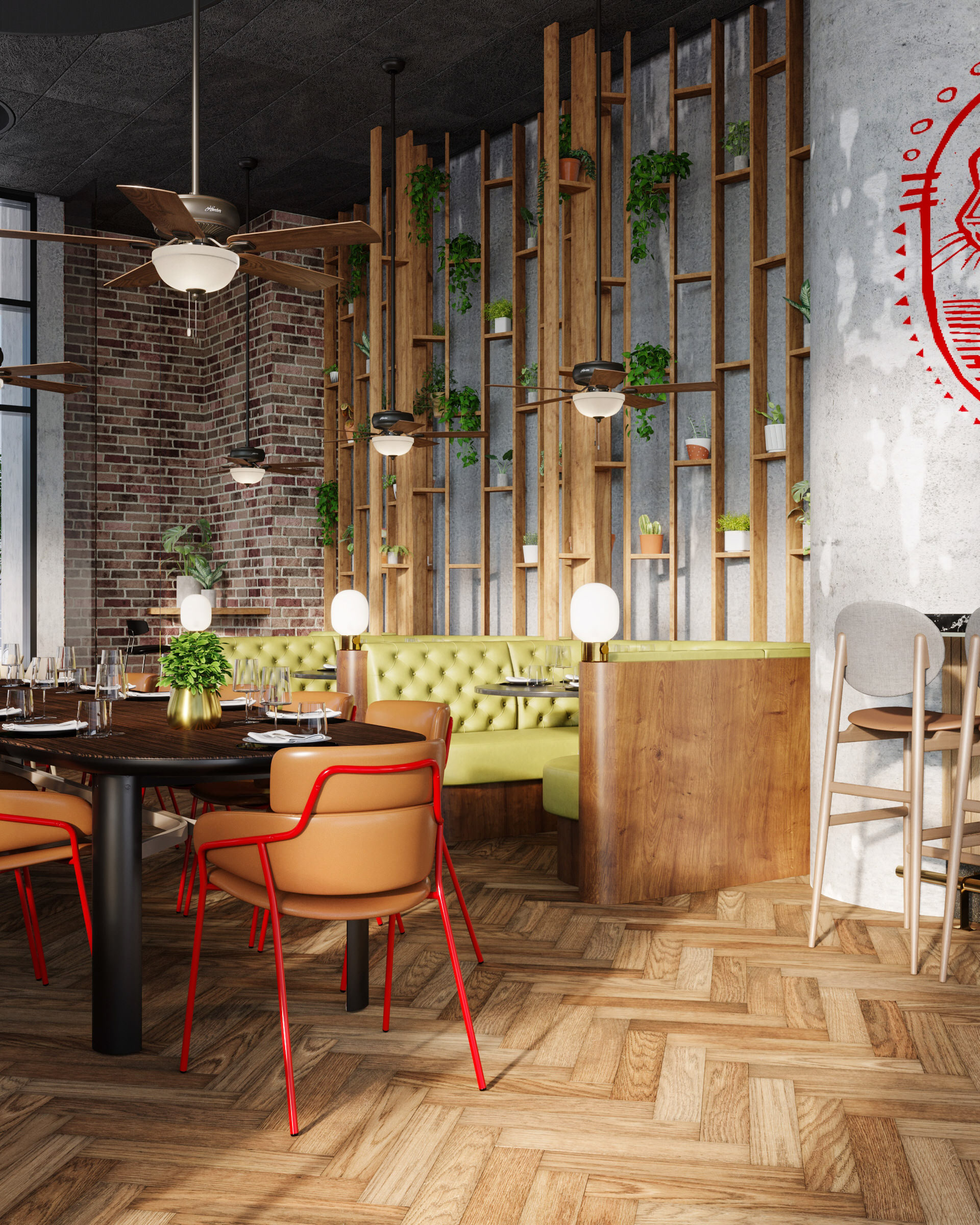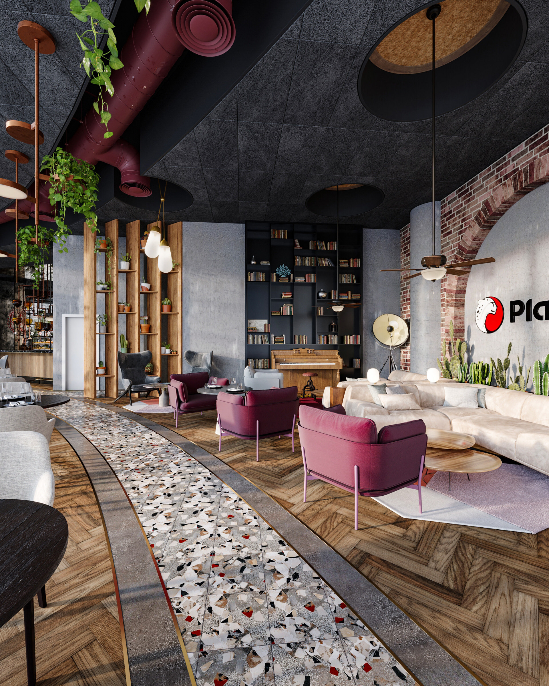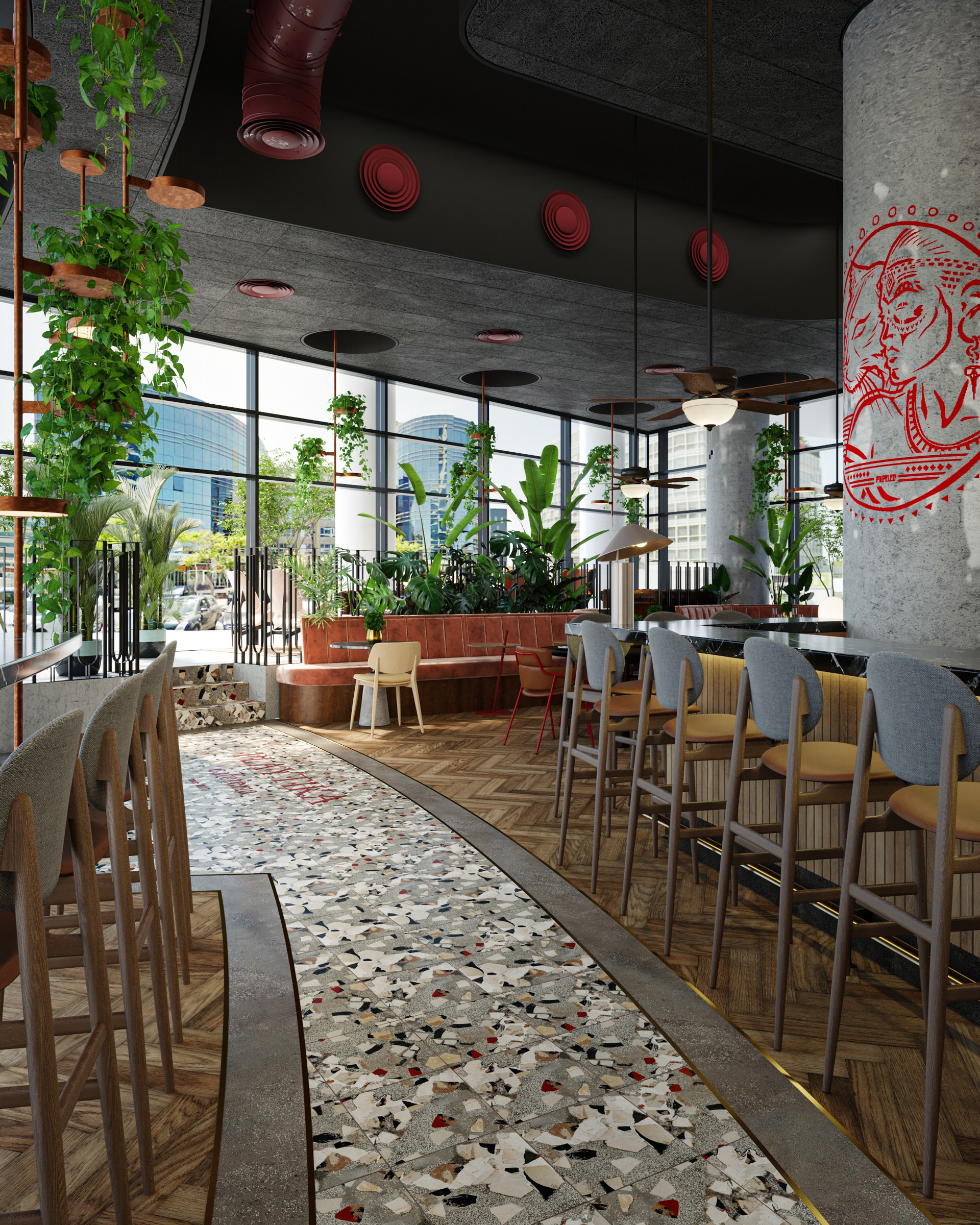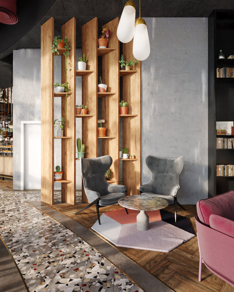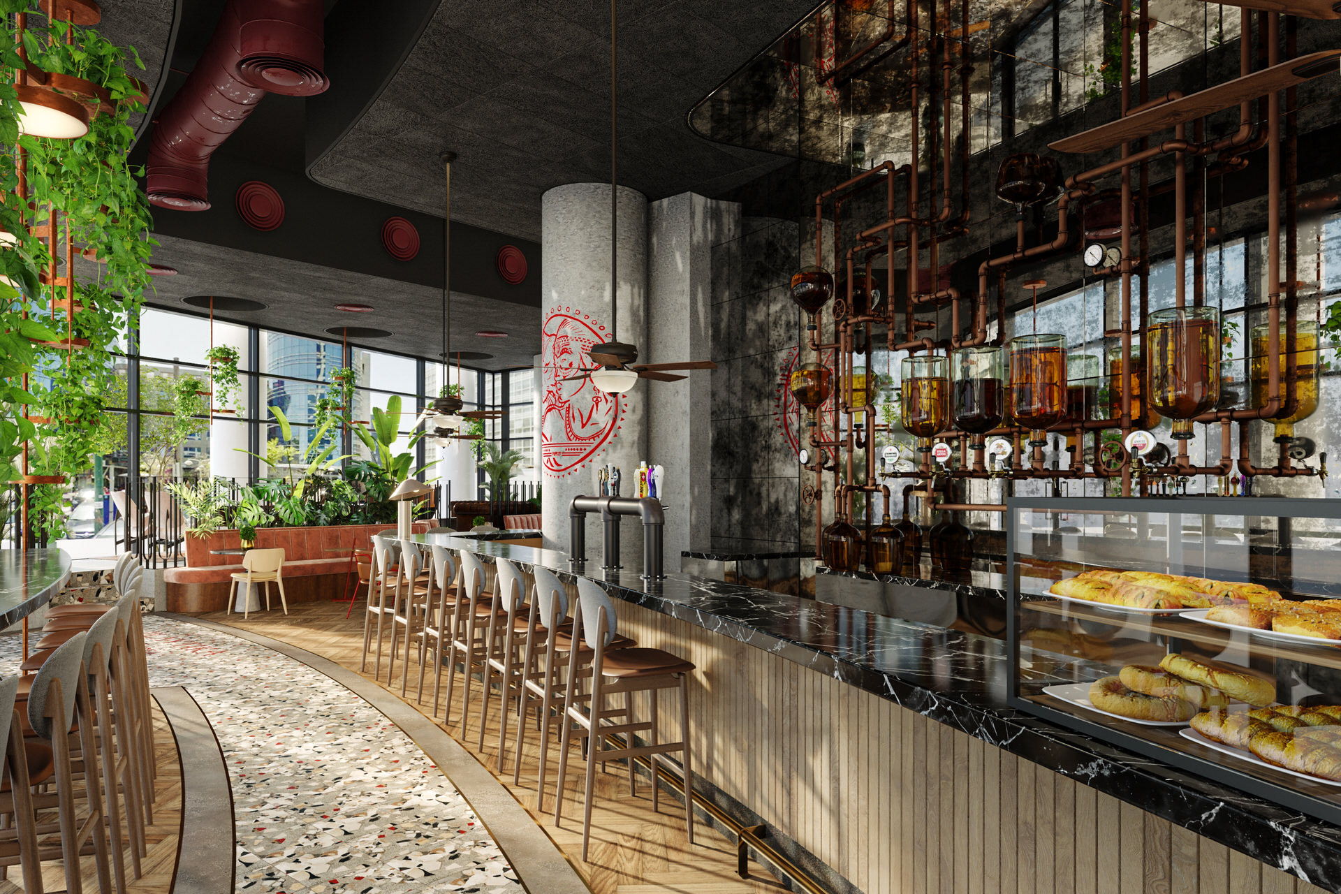 Interior Design Visualization by The Craft for Playtika's Headquarters Bar in Herzliya, Israel. Design by ROYDAVID ARCHITECTS.