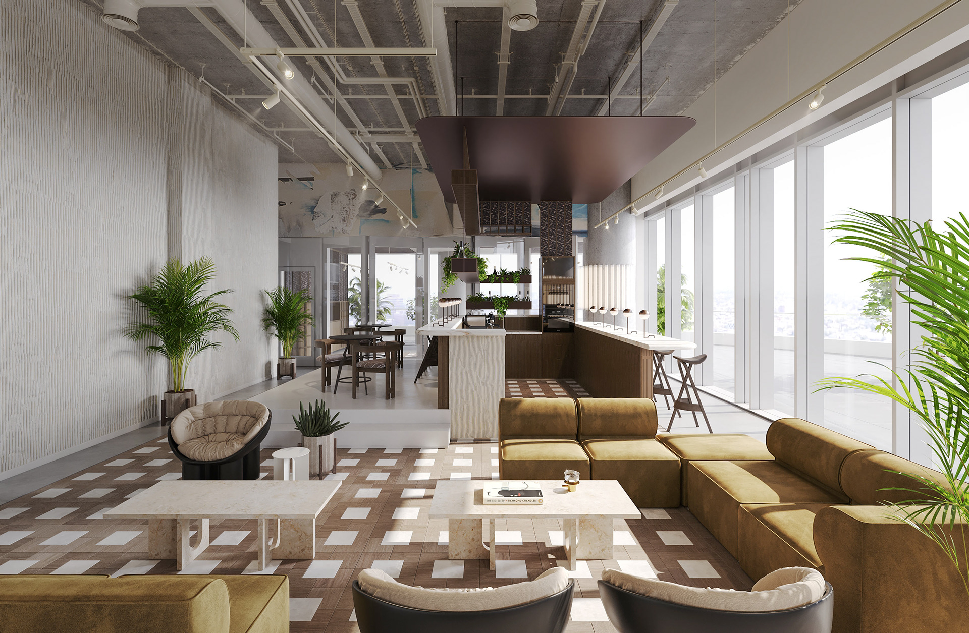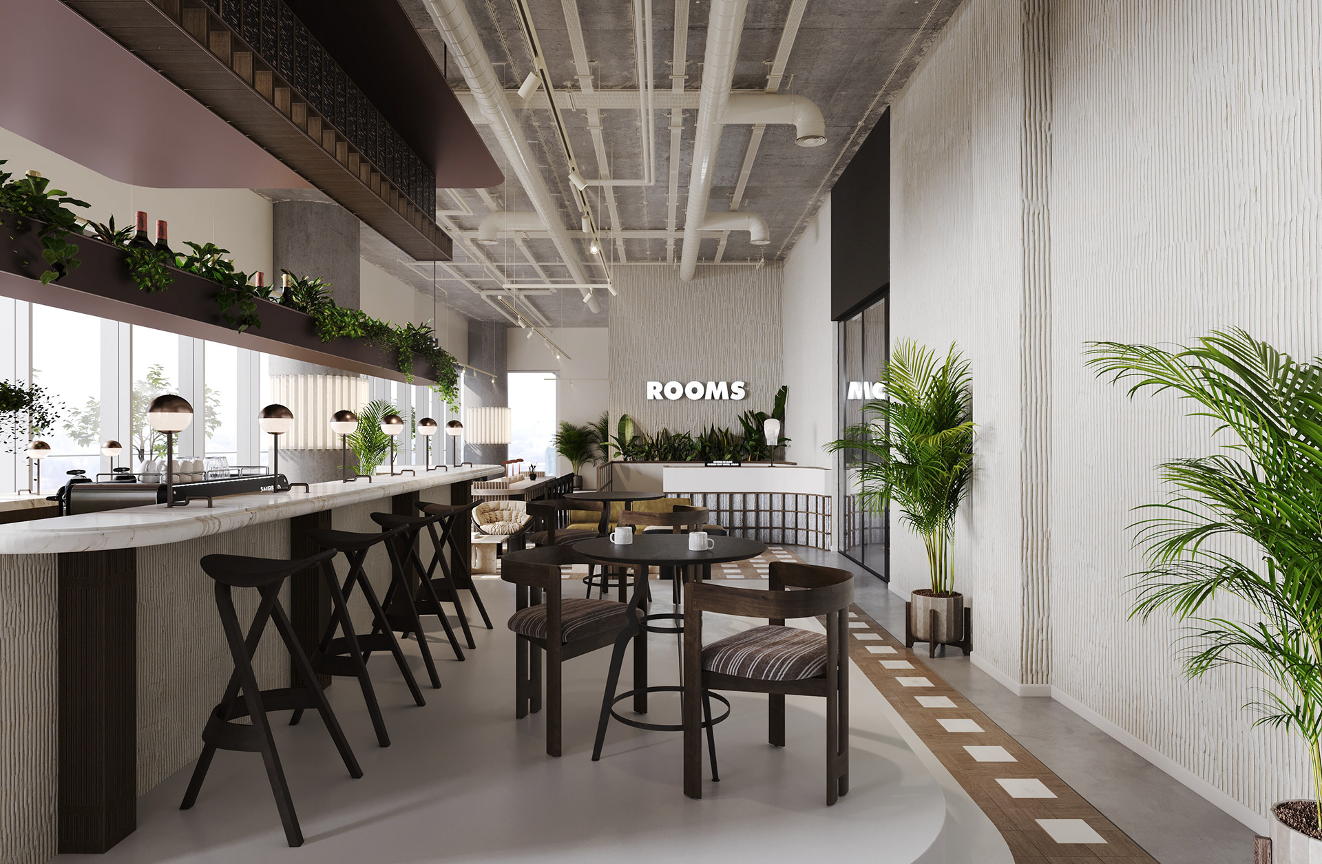 ROOMS Beit Rubinstein. A New Co-Working Space Concept by Fattal Hotel Group in Tel Aviv, Israel. Visualization by The Craft.