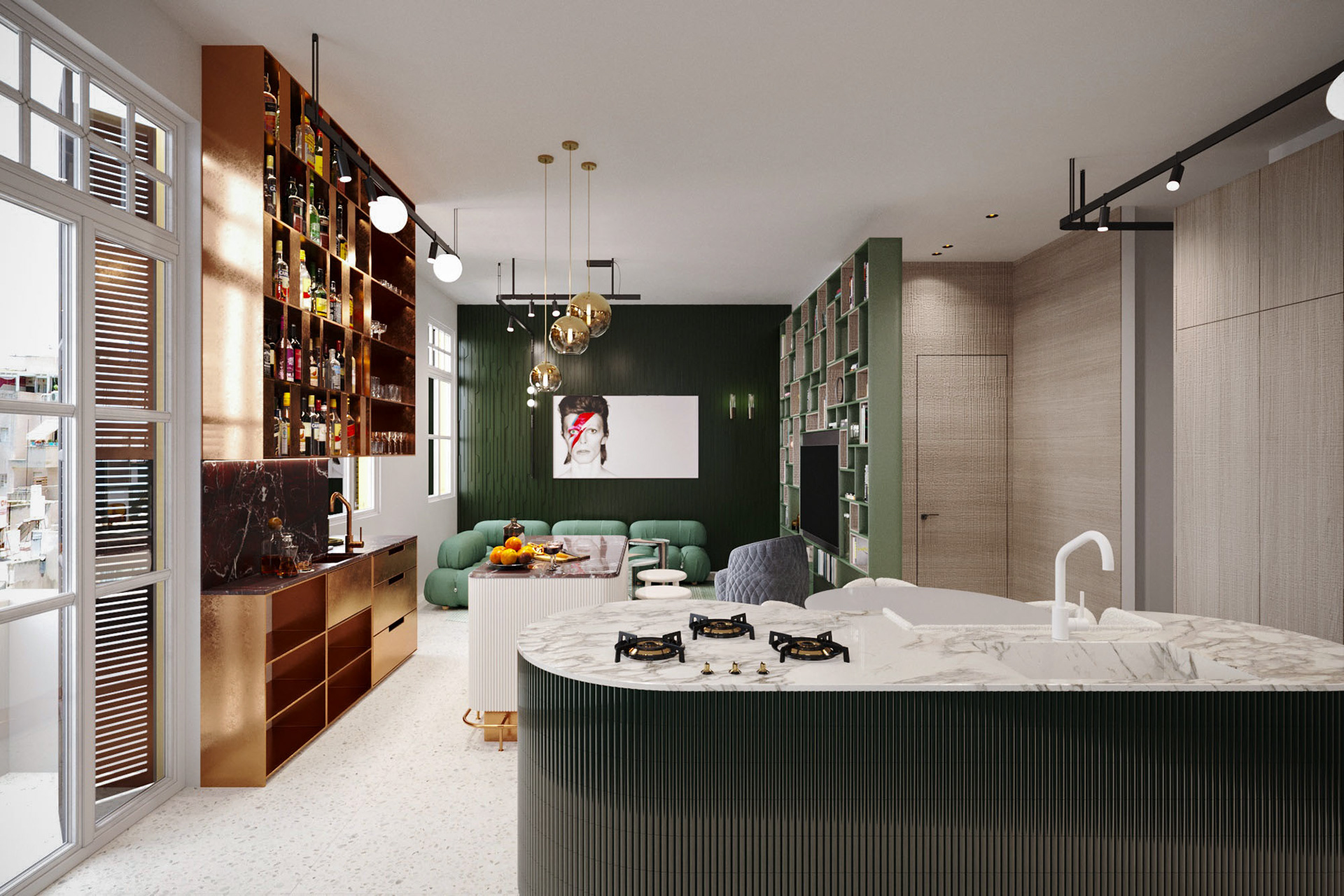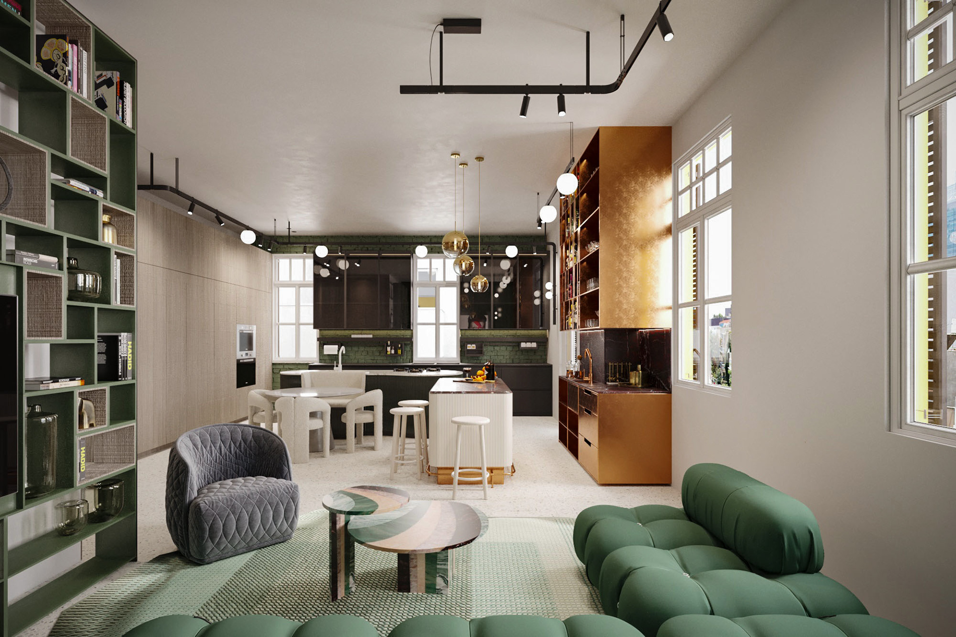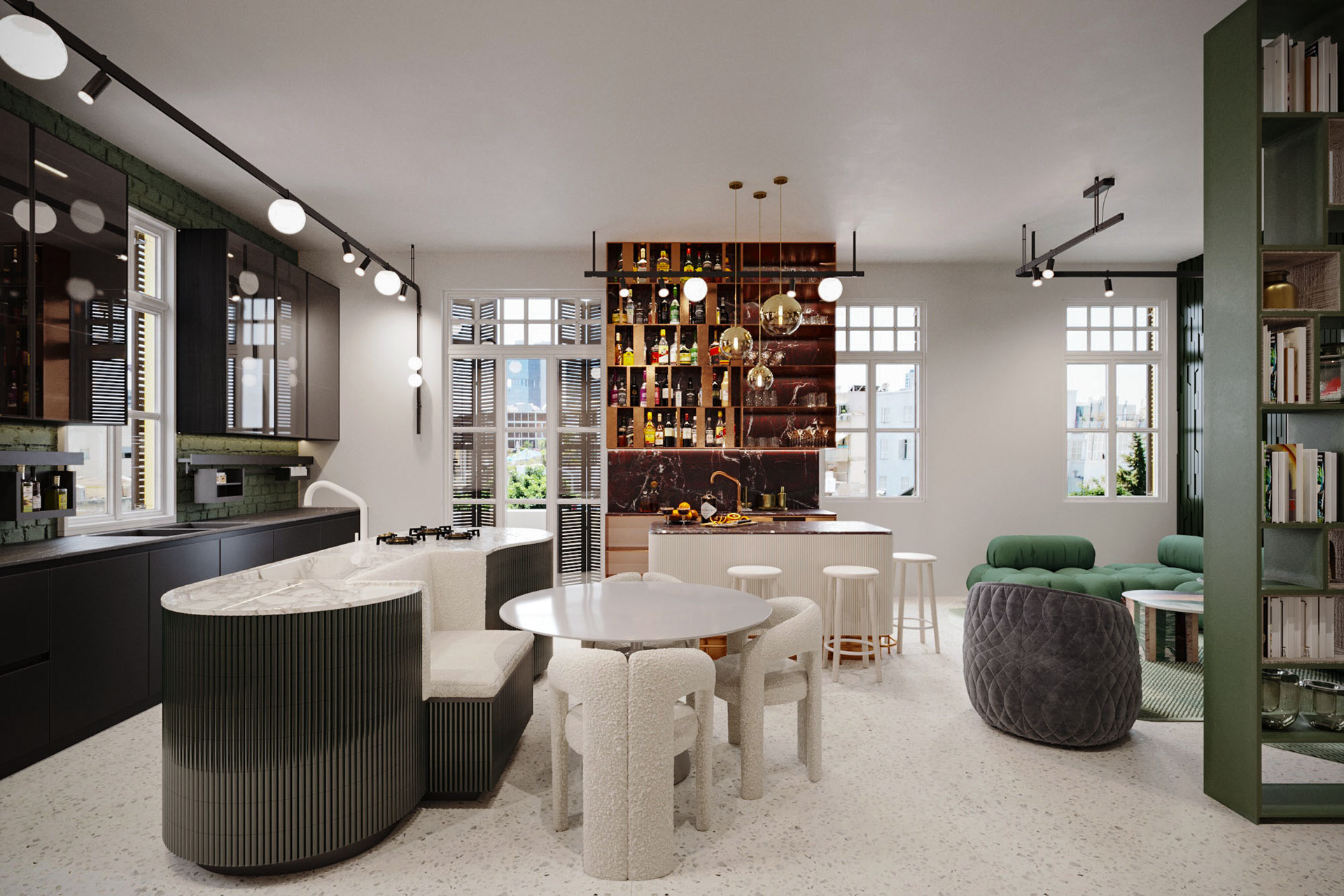 S Apartment - Interior Design Visualization by The Craft for a new apartment in a building conservation project in Tel Aviv, Israel. Designed by Yaron Eldad Architecture + Interior Design.