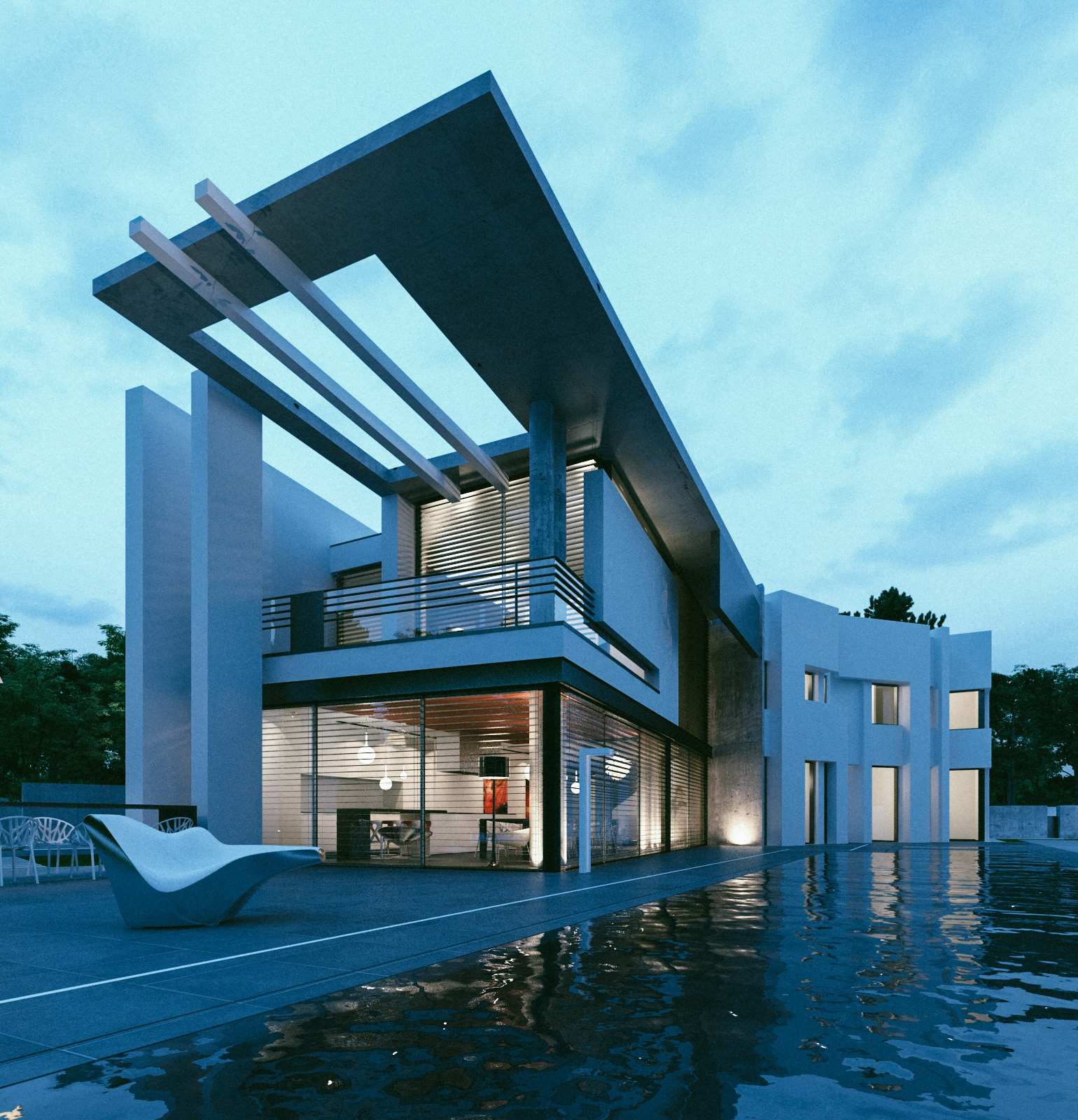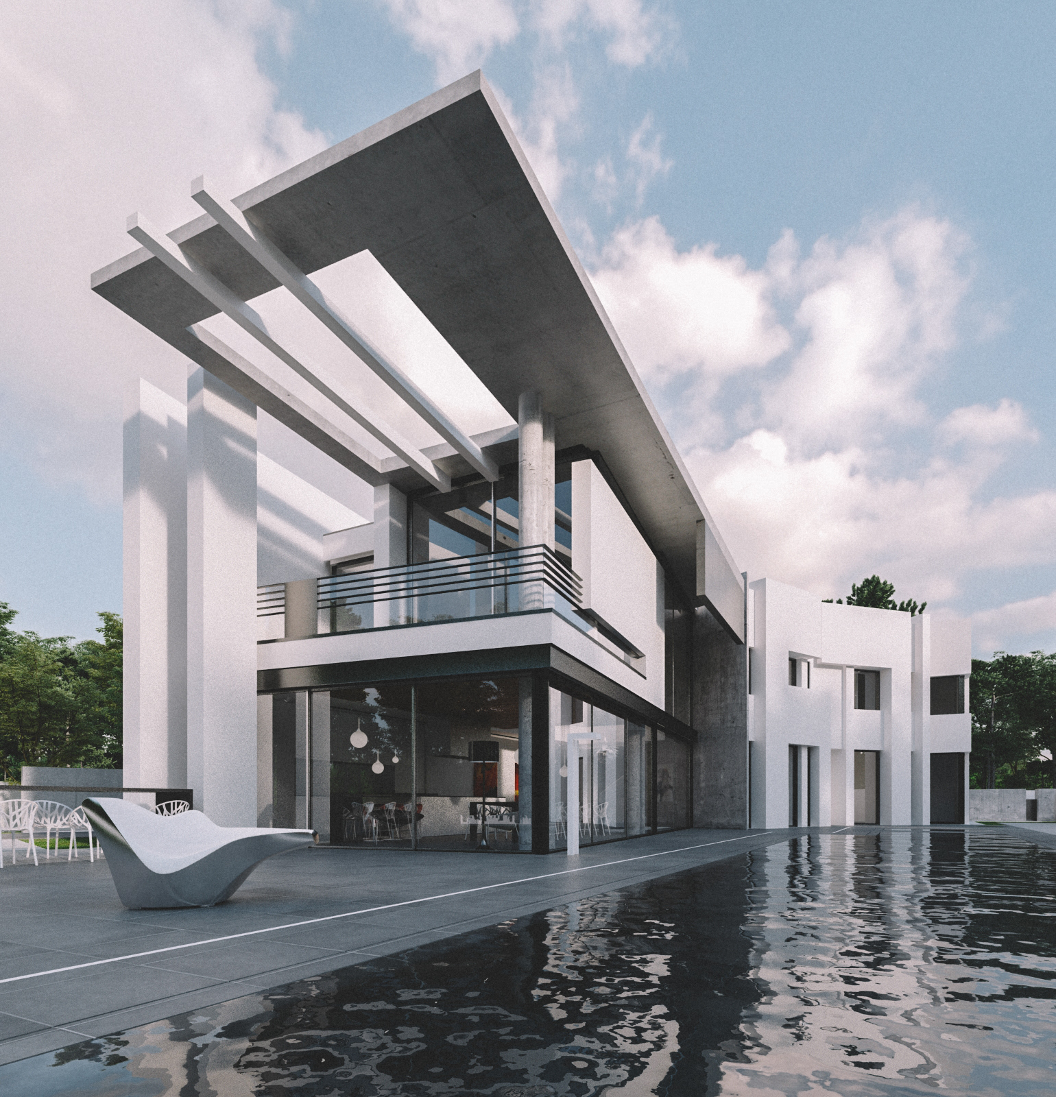 CGI Visuals showing the GH House, also known as "The Shrimp House" in Caesarea, Israel. Designed by Architect Zvi Dunsky.