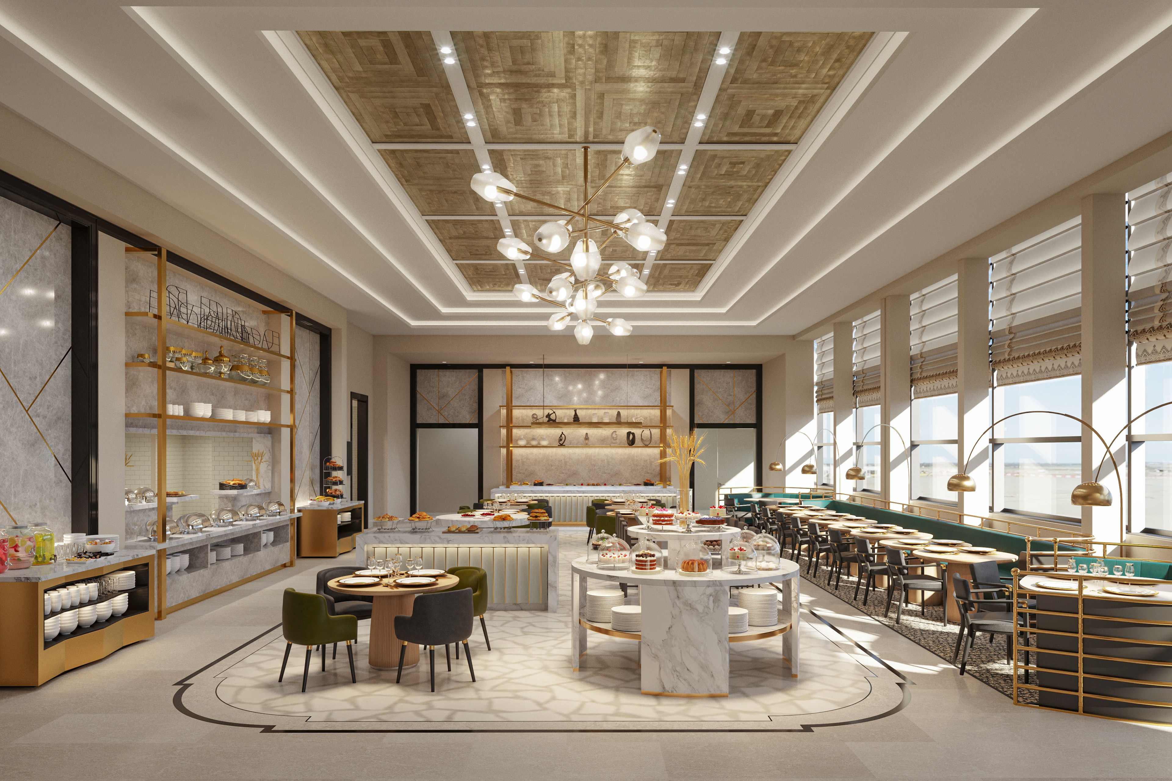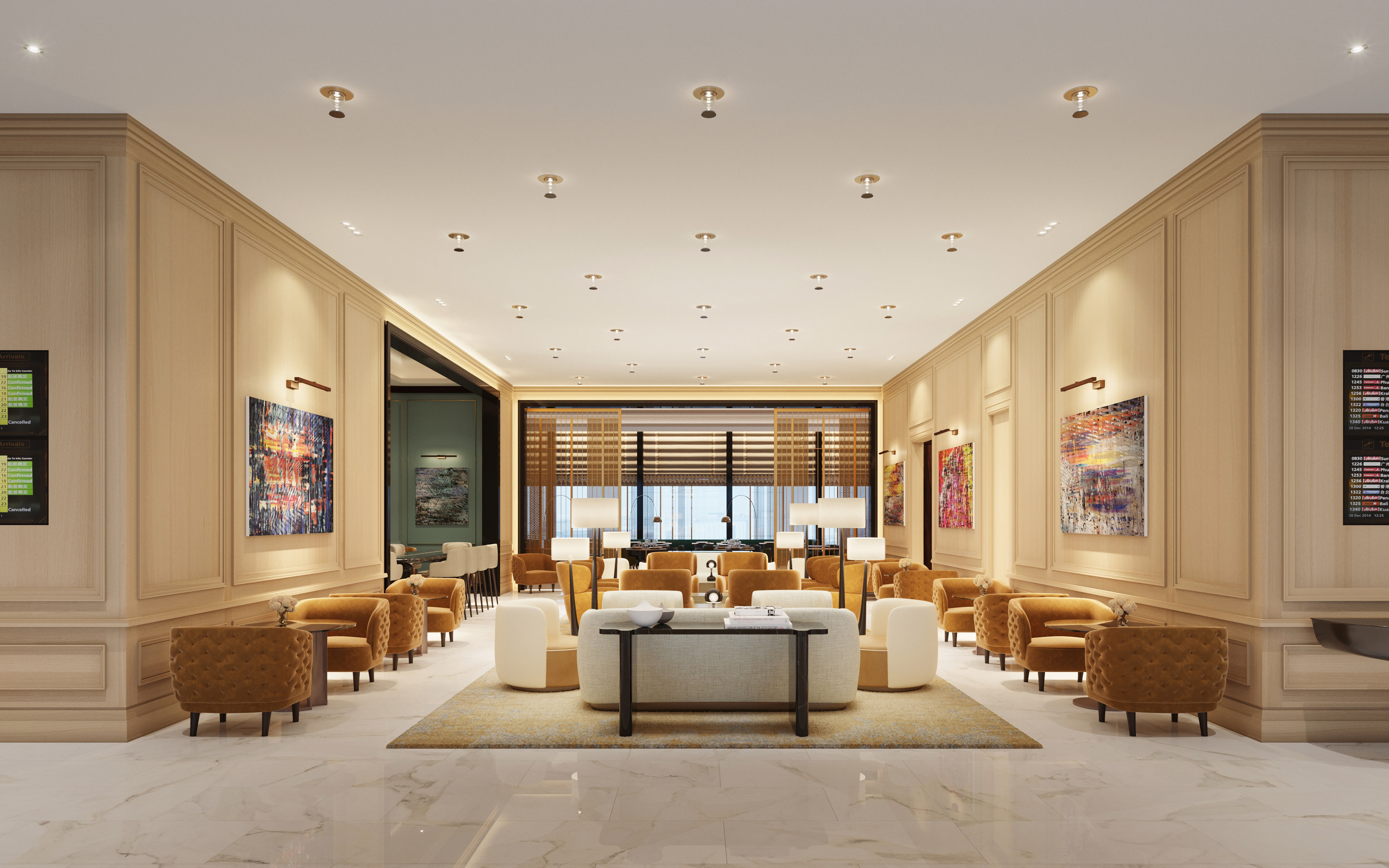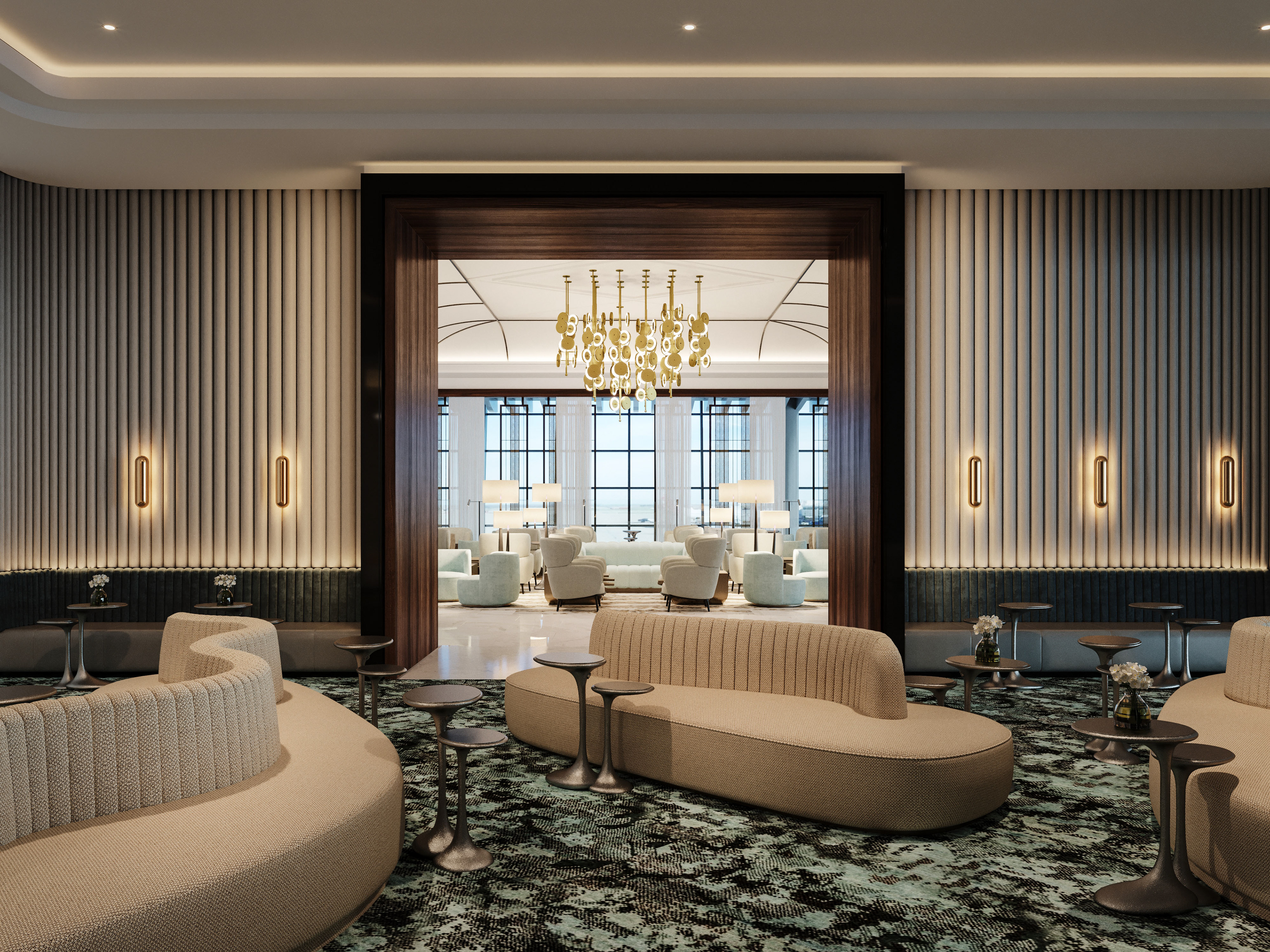The Pearl Lounge at Bahrain Airport - The visualization project was done at The Craft in 2018, showcasing the (ongoing) design process by Champalimaud Design.